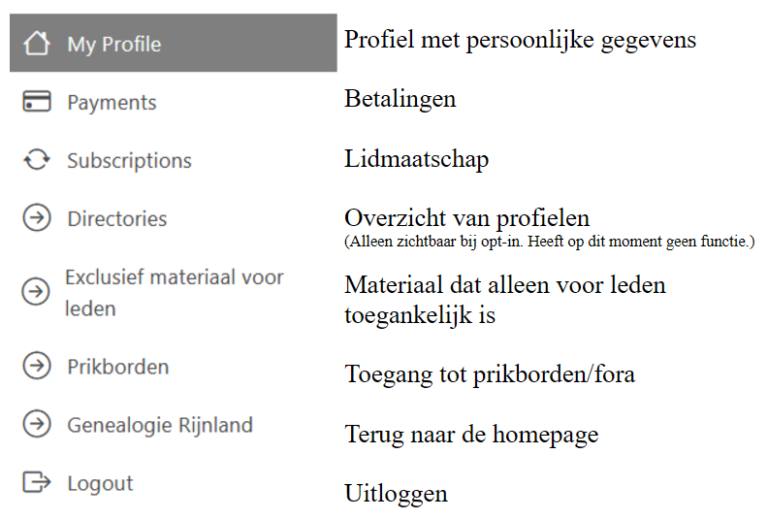 Onder leden is een uitklapbare menu. Hier is de mogelijkheid om in en uit te loggen en de accountpagina te vinden.